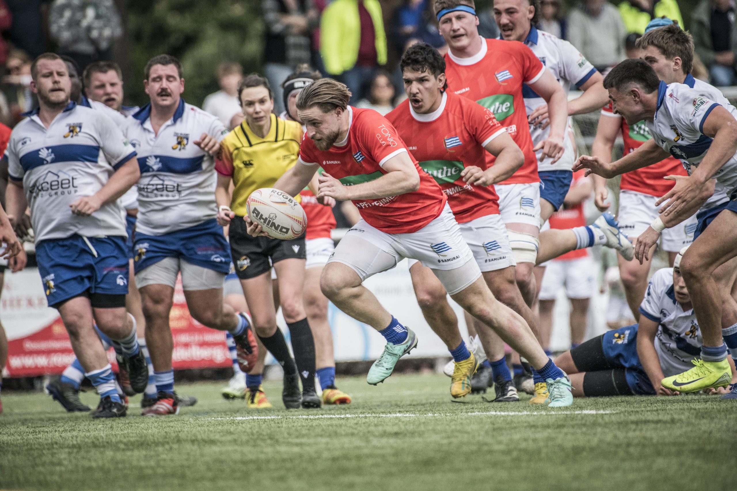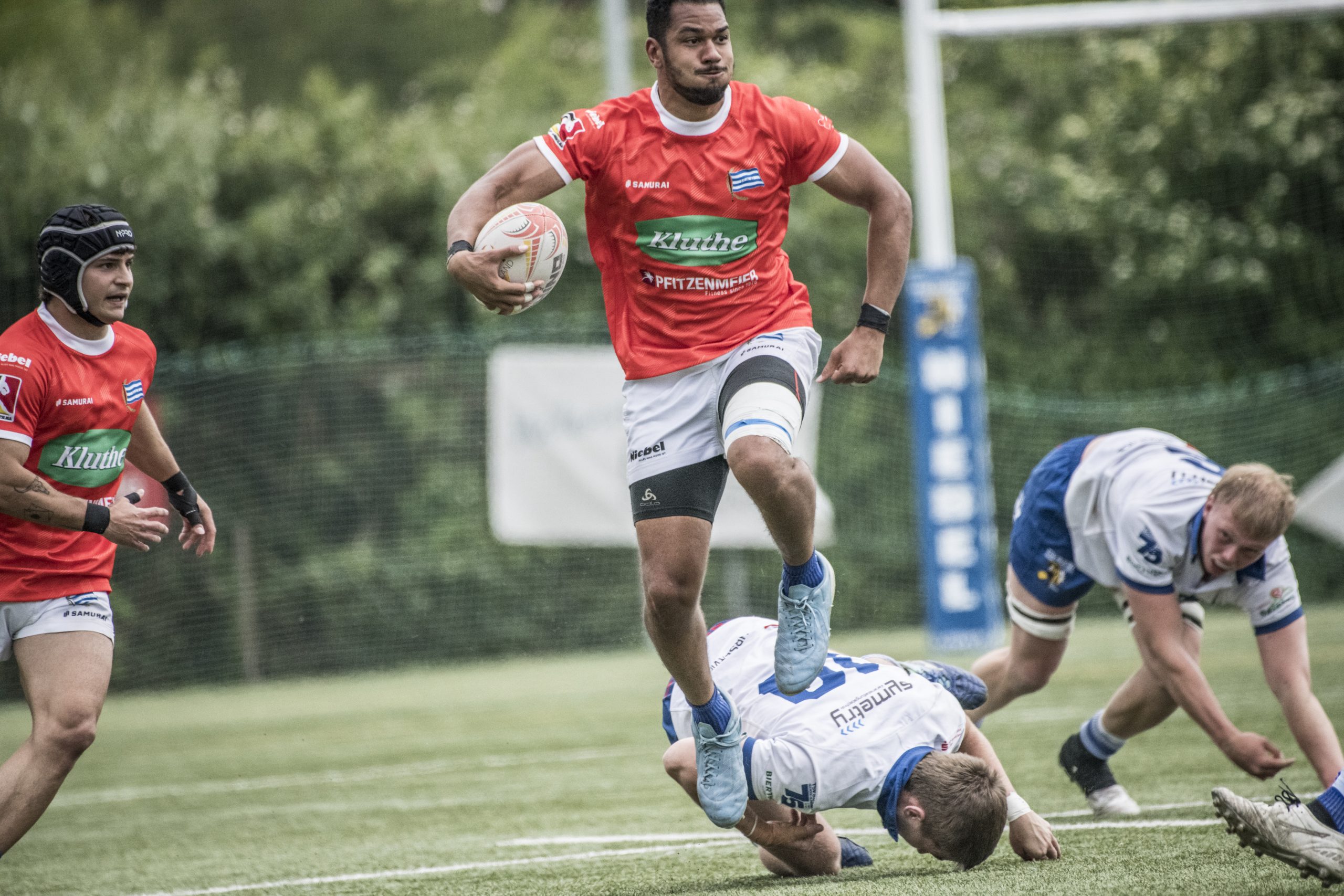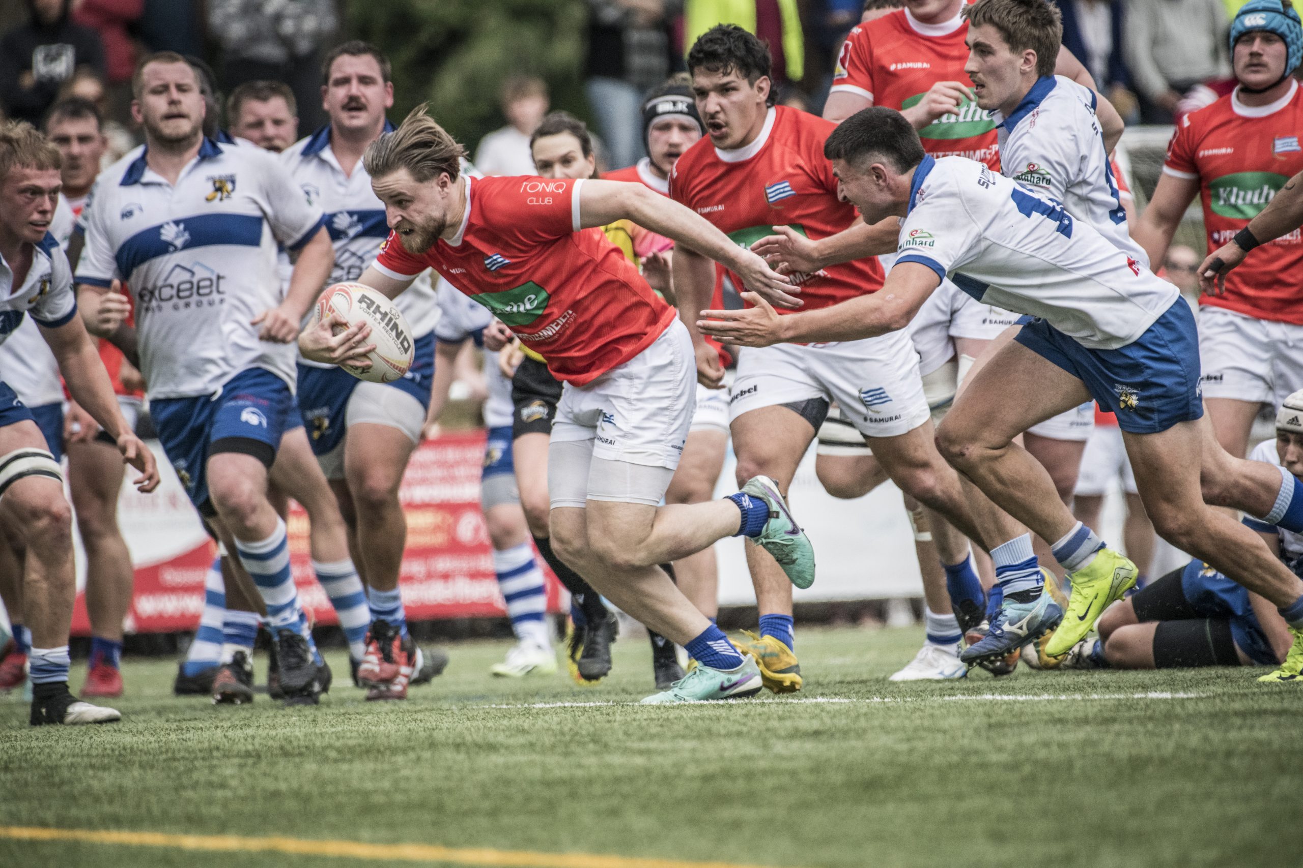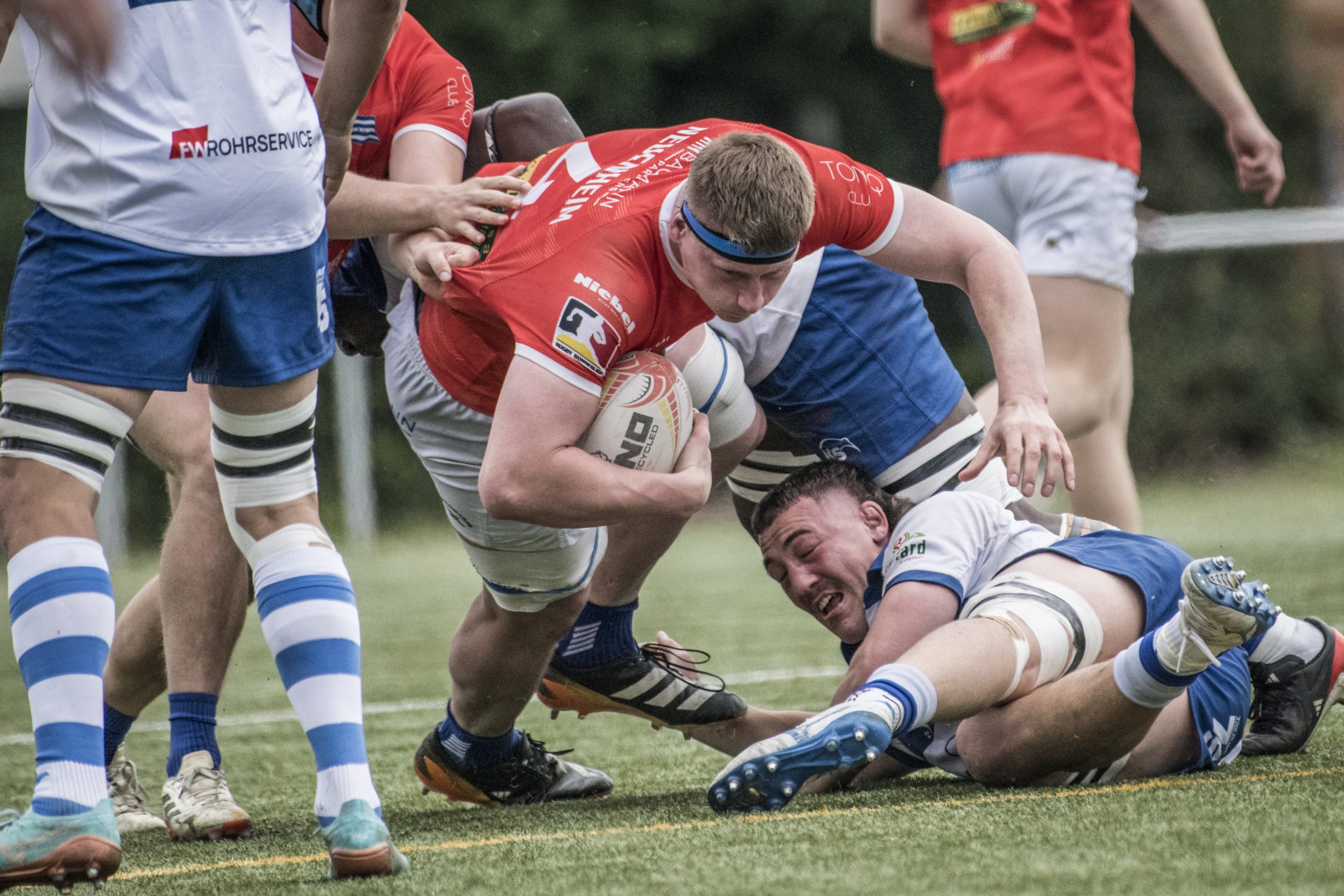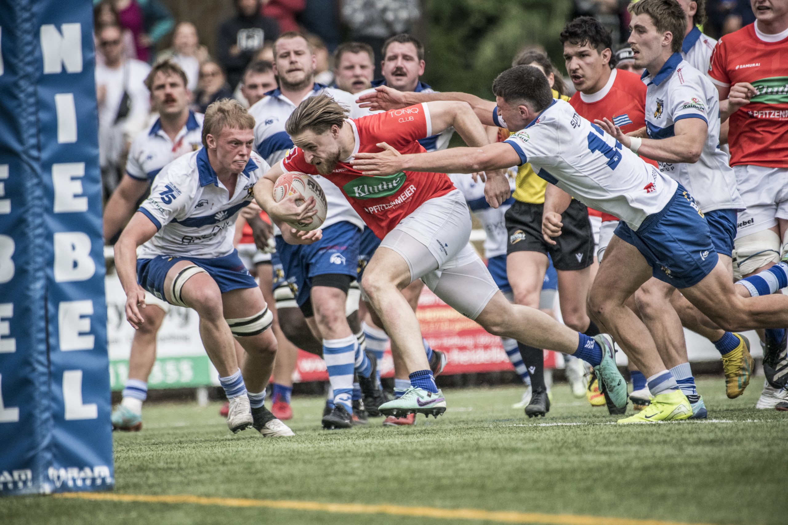 Die Blauen mussten eine bittere Niederlage gegen den Lokalrivalen im Derby einstecken. Der SCN hatte zwar den frühen 0:14-Rückstand bis zum Seitenwechsel beim 14:14 egalisiert und legte wie der TSV drei erhöhte Versuche, am Ende aber siegte der TSV Handschuhsheim, weil er zwei Straftritte mehr verwandelte. Endstand 21:27 aus Neuenheimer Sicht.