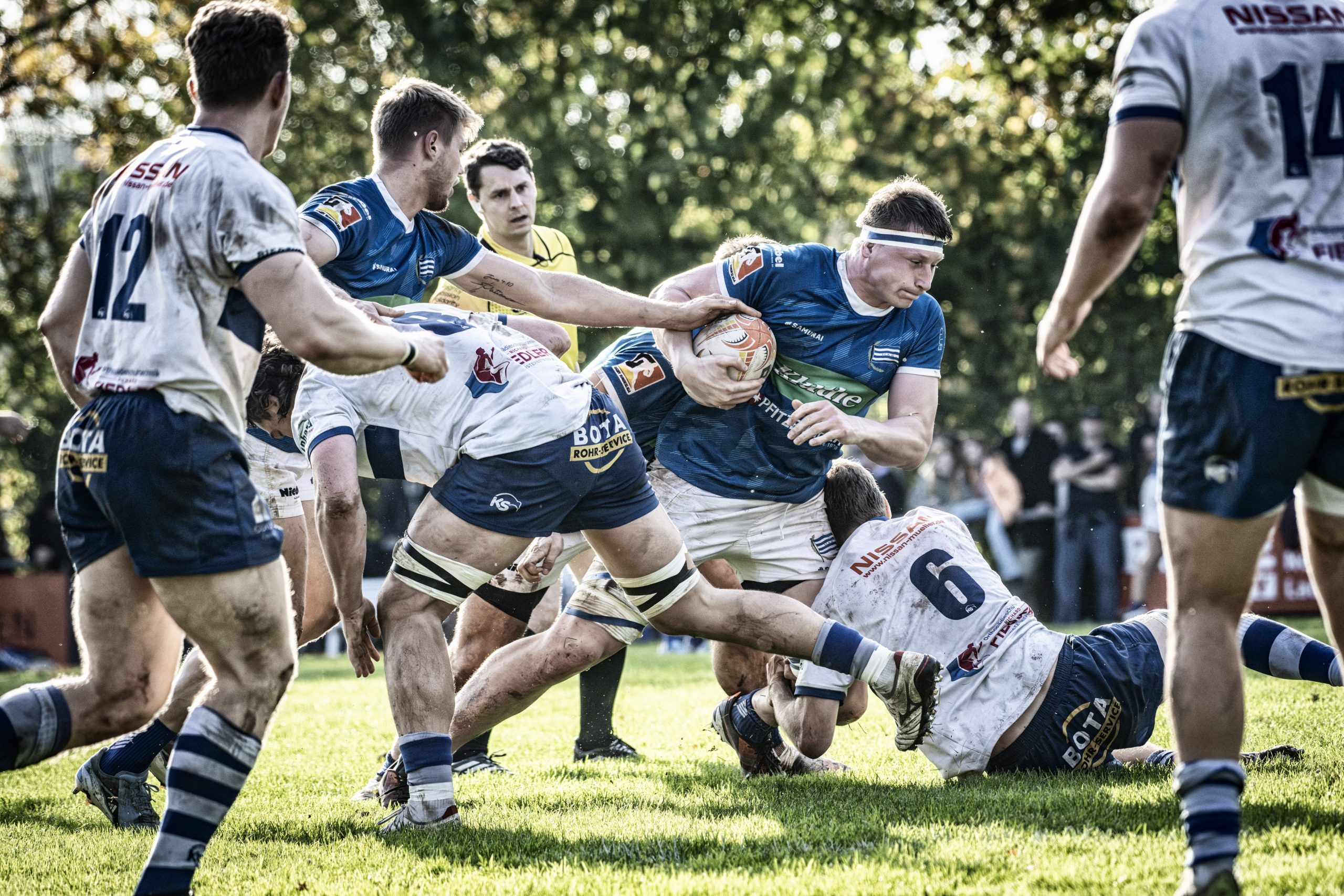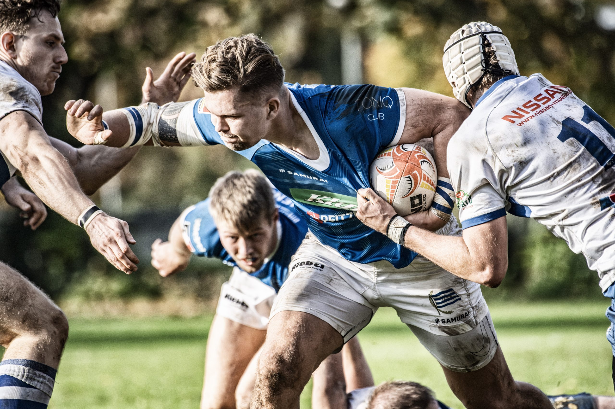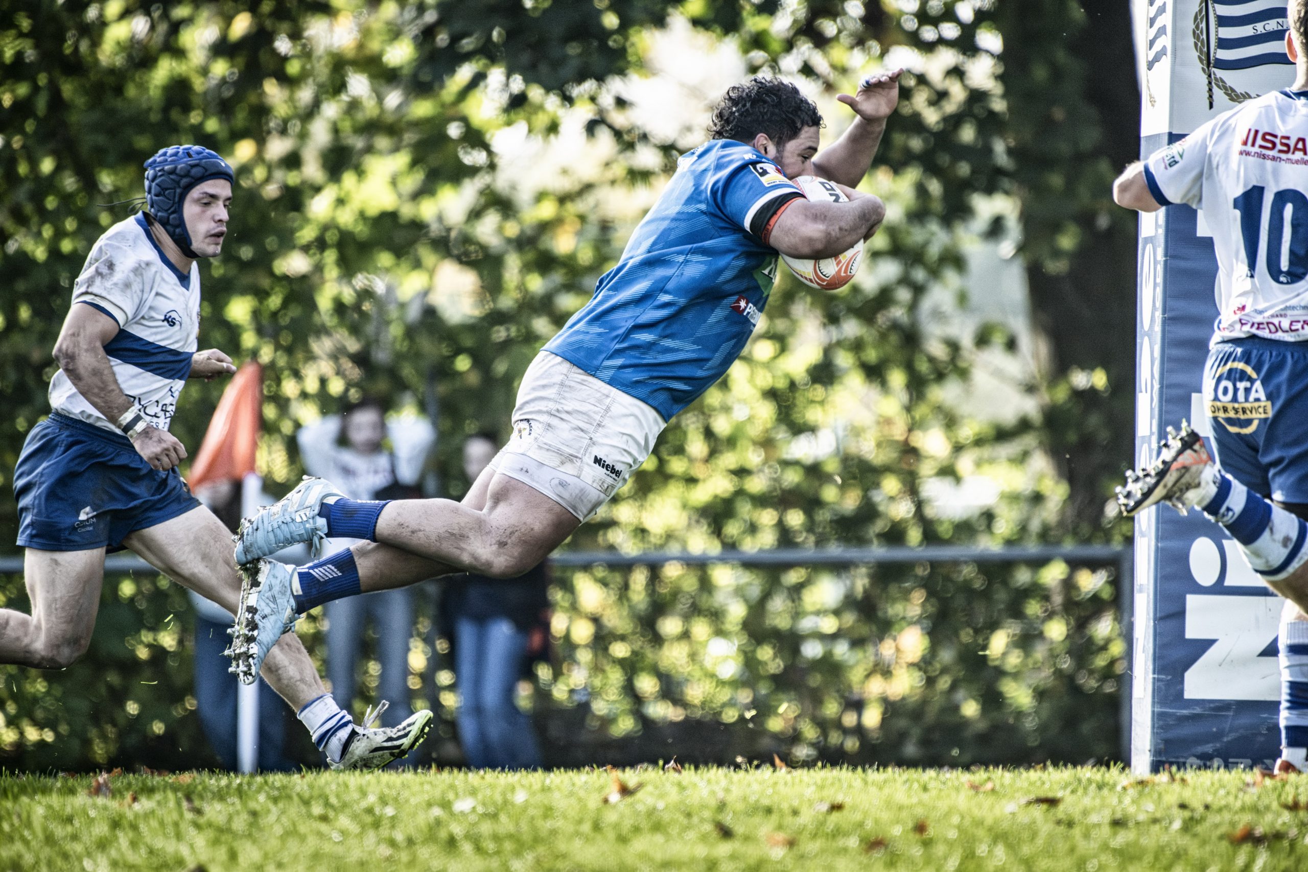 Es dauerte zwar bis zur Mitte der ersten Halbzeit, ehe unser Team durch Luke Wakefield an der Eckfahne per Versuch in Führung ging, danach aber ging es sehr schnell und die drei weiteren Versuche durch Nick Rinklin, Finn Schwager und den fliegenden Prop Gaston Salvi besorgten den Bonuspunkt und – in Addition mit zwei Erhöhungen durch Nikolai Klewinghaus- die 24:5 Halbzeitführung. Zwischenzweitlichb hatten die Löwen zwar durch Marius de Giacomoni zum zwischenzeitlichen 17:5 verkürzt, aber kaum mehr Zugriff auf das Spiel, weil der SCN in beiden Mannschaftsteilen stärker war.
